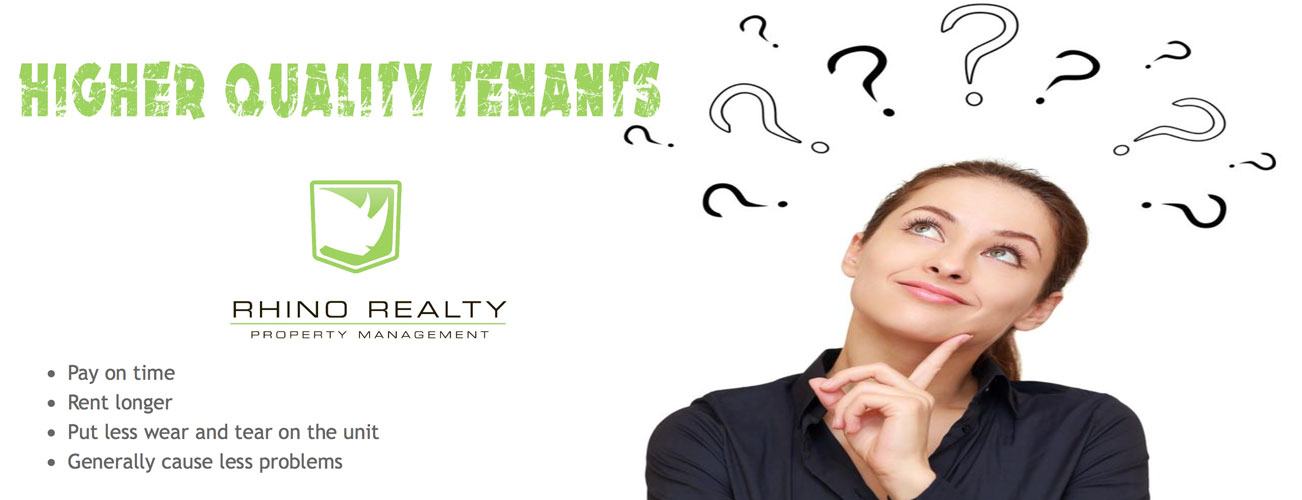 Rhino Realty is an experienced property management company and has seen thousands of applications and knows how to quickly identify and analyze candidate information for warning signs. By allowing a Rhino Realty Property management to handle tenant screening, you will be shielding yourself from rental scams, and discrimination lawsuits that can result from an inconsistent tenant screening processes. This level of screening takes time and experience, but means avoiding bad tenants, scams, and lawsuits. Diligent tenant screening and approval is arguably one of the most significant benefits a property management company can provide.